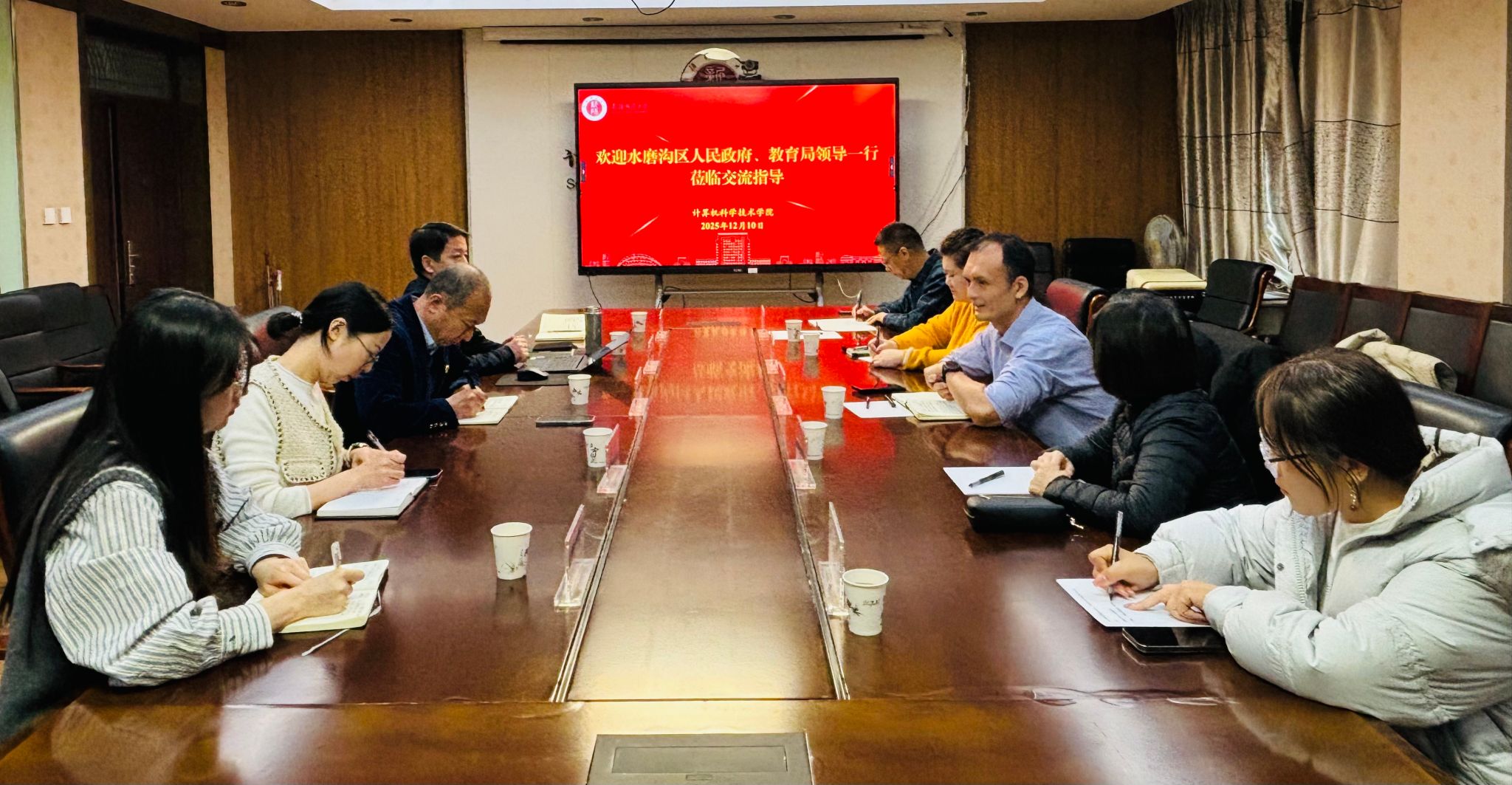 2025 年 12 月 10 日,乌鲁木齐市水磨沟区人民政府副区长杨鹏、区教育局工会主席李潇一行莅临世俱杯-足球世俱杯 开展调研交流。世俱杯 党委书记张海军、党委副书记、院长齐向伟热忱接待,双方相关部门负责人参加座谈,围绕教育数字化转型及多领域协同发展展开深度对话。